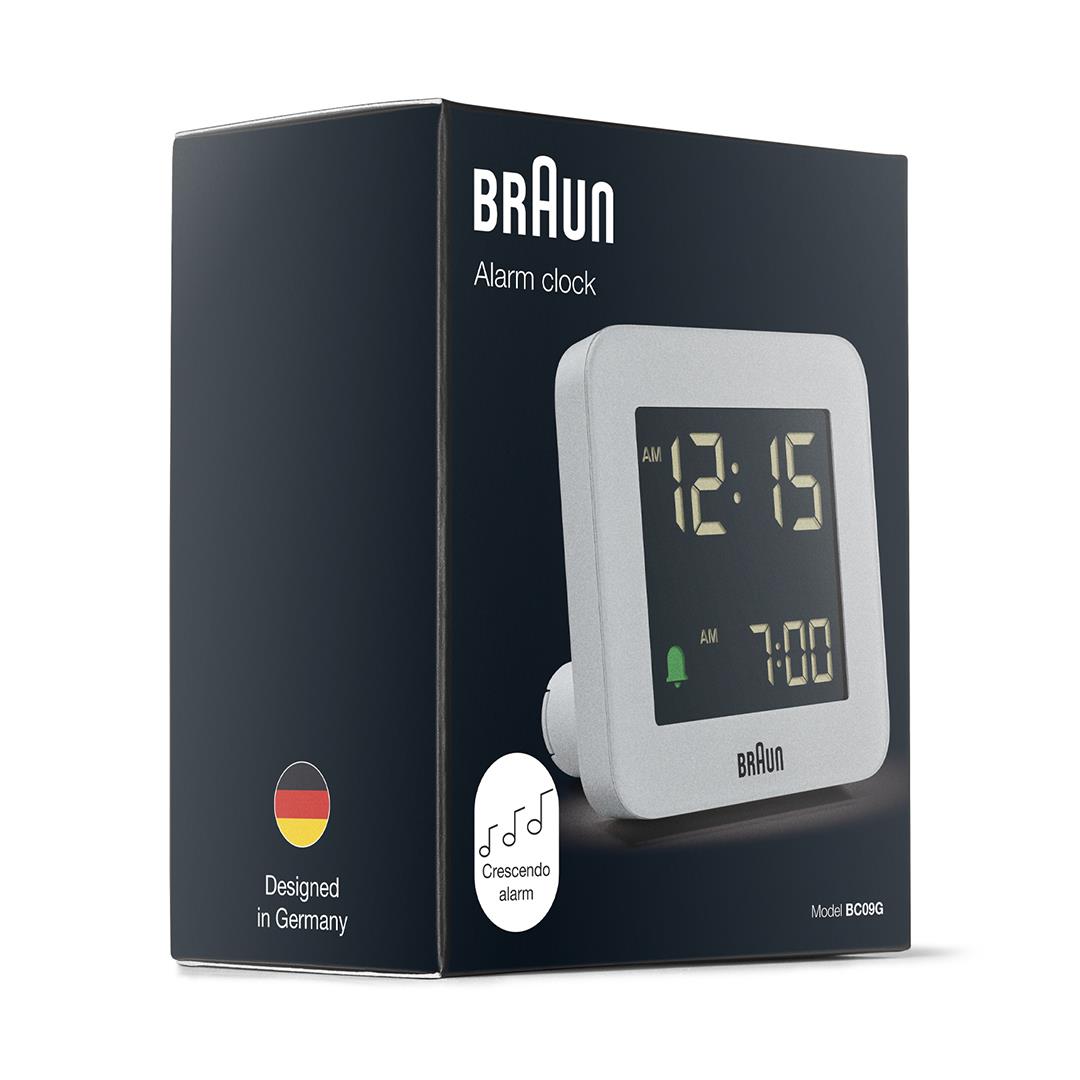 Winner of a Red Dot Design Award for 2020. The BC09 is a move on from the classic BNC009 digital clock, the improved features and functions a response to customer feedback and experience. The BC09 features a crescendo beep alarm, snooze and backlight function and LCD display with 12-hour and 24-hour setting options, all of which improve the functionality of this clock. A design that reflects Braun principles of consistency, simplicity and clarity of design.